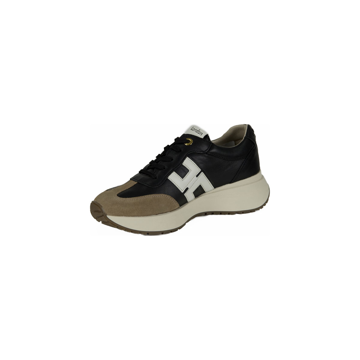Chunky leather sneaker with lateral contrast detail
